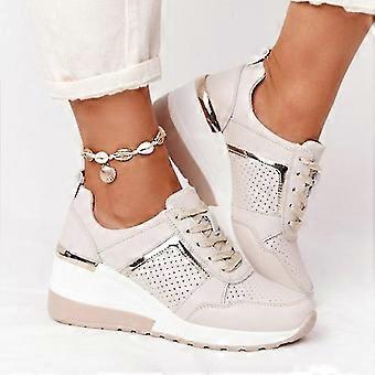Bağcıklı Kama Spor Snickers Kadın Vulkanize Günlük Rahat Ayakkabı Gri 36