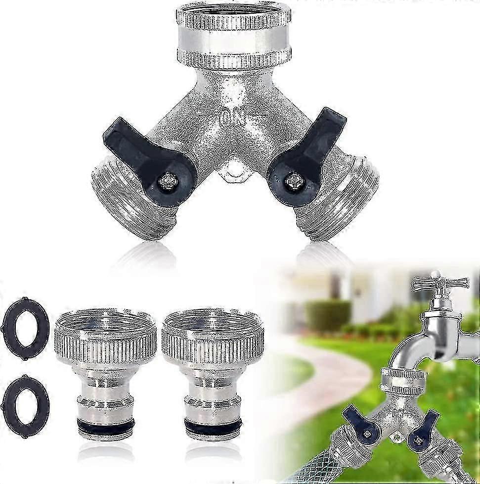 Garden Tap Splitter, 2 Way Hose Splitter Double Brass Tap With 2pcs 3/4 Inch Tap Hose Connector For Garden Irrigation