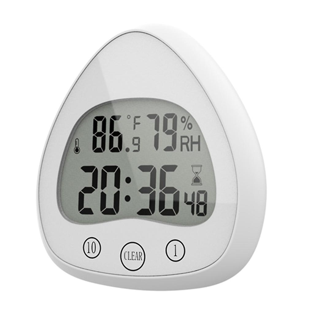 Features: 5 grade waterproof, no fear of water pouring in all directions (waterproof and dustproof level IP25) The countdown time can be superimposed up to 99 minutes. Temperature and humidity display (/ switchable) The countdown function helps to control the time of soaking and washing in the bathroom environment. Countdown can also be used in kitchen cooking, learning and education. Strong double-layer suction cup, can be adsorbed on glass and and non-grained tiles. Back hook hole and built-in bracket, worried about the suction cup unstable users can choose to stand to use. Specifications: Material: Plastic Weight: 150g Size: 10.9x5x11.2cm/4.29x1.96x4.40inch Power: 2xAA Battery(Not Included) Room Temperature Measurement Range: 0 to 50 Room Humidity Measurement Range: 15% to 95% Note: 1.Please allow 1-2cm errors due to manual measurement, make sure that you do not mind before you order. 2.Due to difference between different monitors, the picture may not reflect the actual color of the item. 3. Do not throw the entire product into the water. Package includes: 1x Bathroom Clock