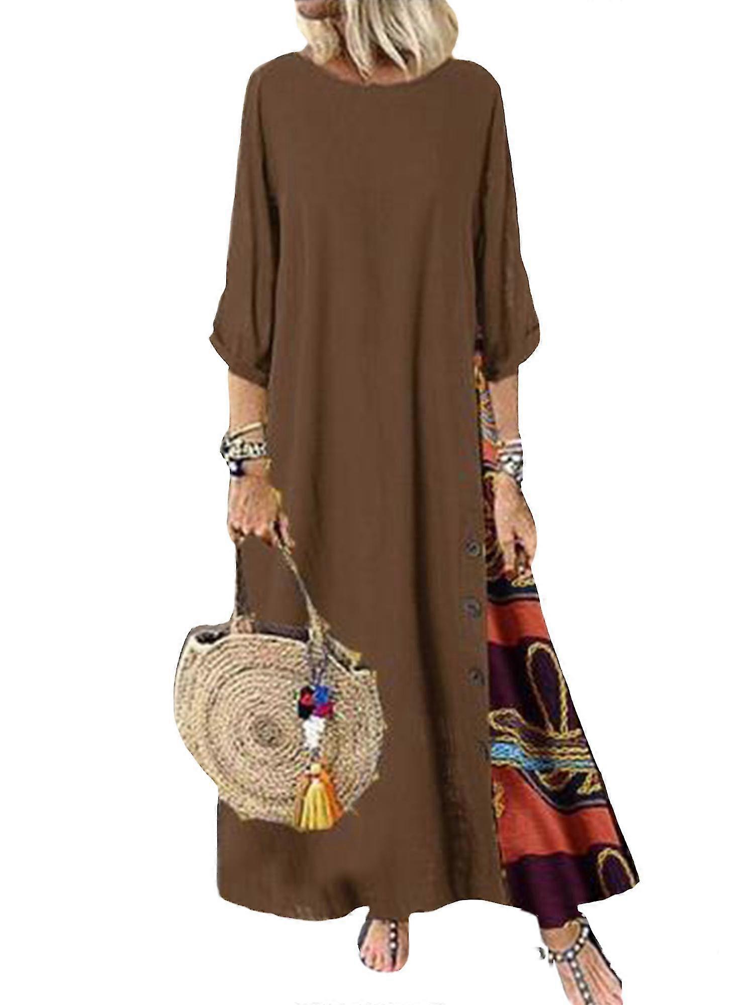 Womens 3/4 Sleeve Floral Printed Long Maxi Dress Holiday Beach Kaftan Sundress
