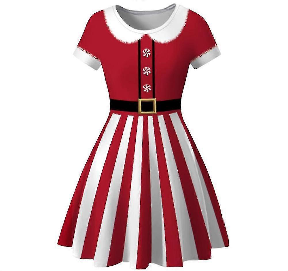 Womens Short Sleeve Casual A-line Christmas Dress,christmas Print Dress