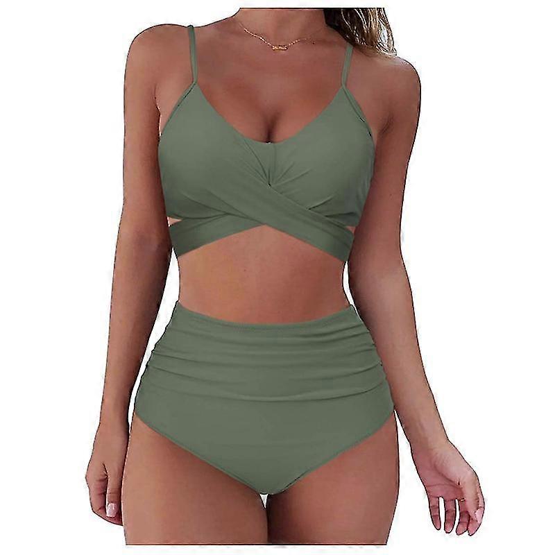 Women Wrap Bikini Set Push Up High Waisted 2 Piece Swimsuits, Green