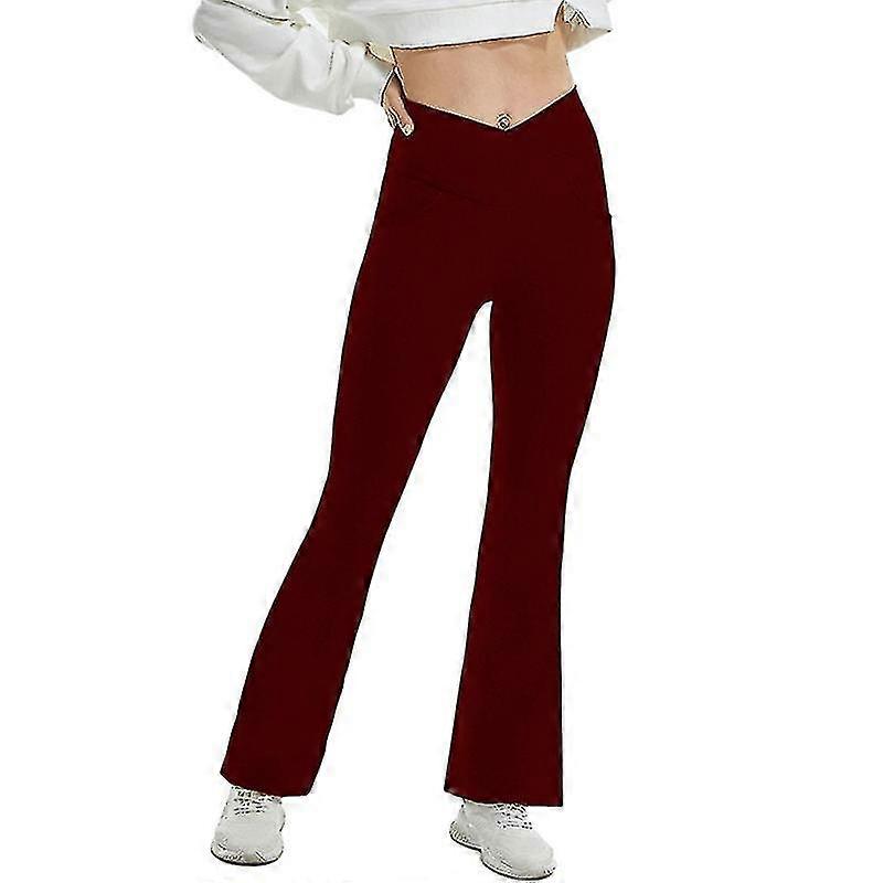 Ladies Yoga Pants Solid Color Flared Leg Workout Pant Regular High Waist Leggings