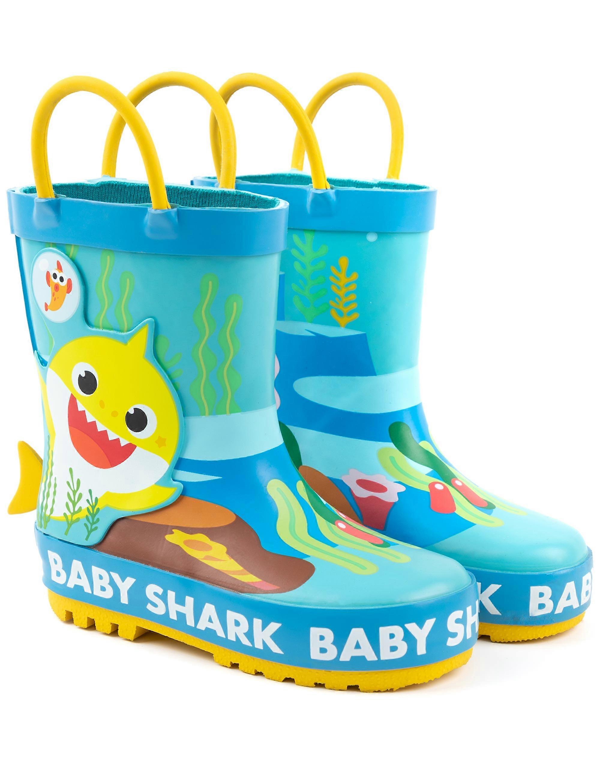 Baby Shark Boys Wellington Boots with Handles Blue 3D Fin Applique