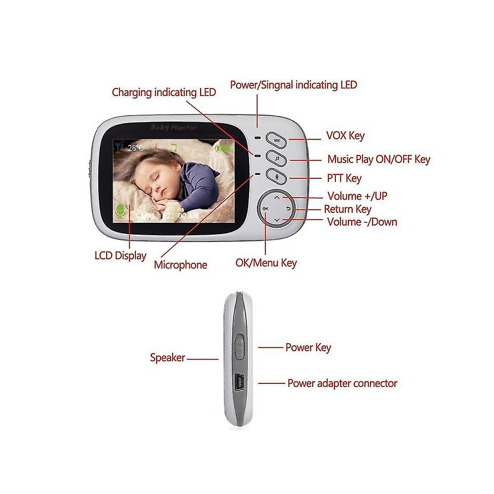Baby Monitor Vb602 Ir Night Vision Temperature Monitor Lullabies Intercom Mode Video Baby Camera Wa