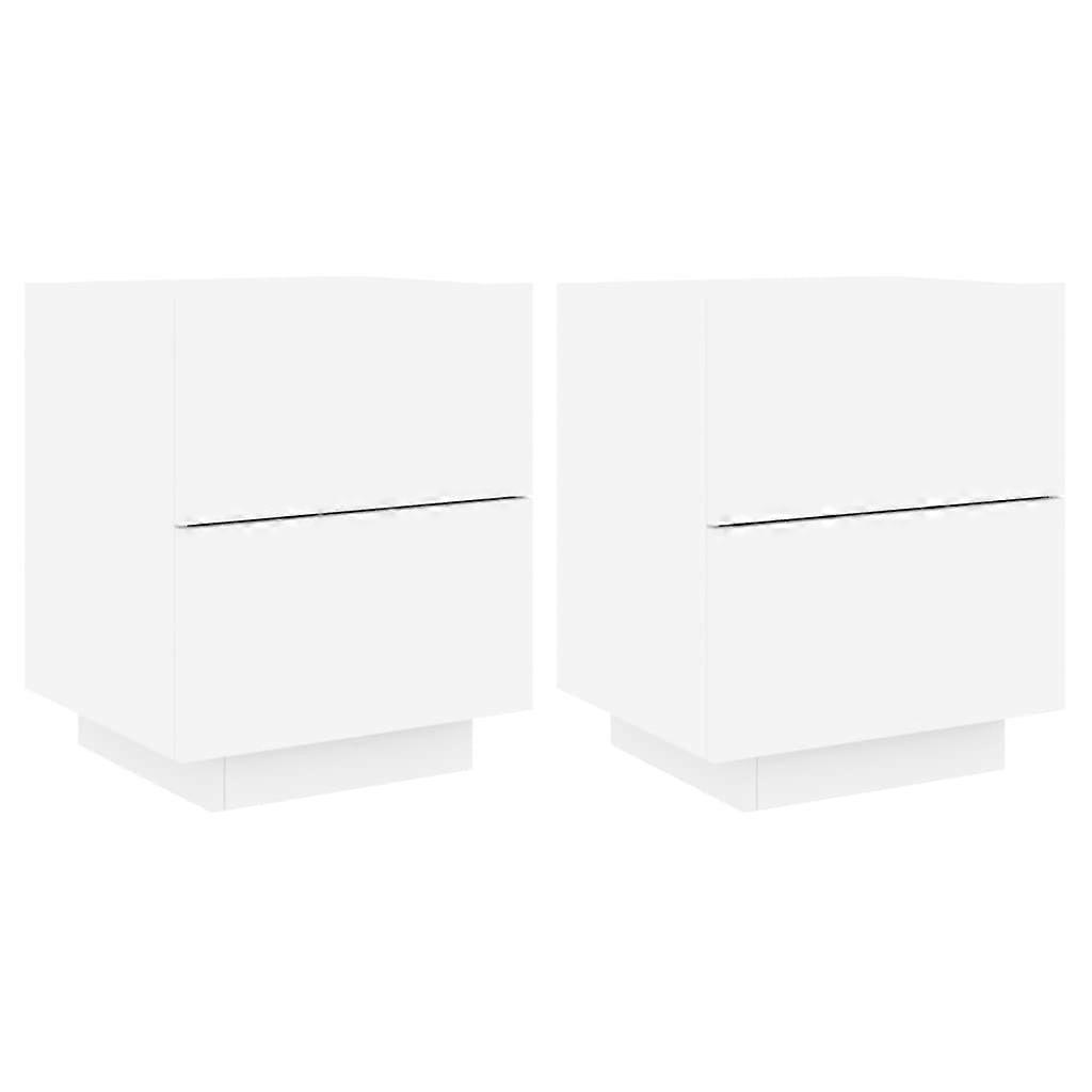 Bedside Cabinets With Led Lights 2 Pcs White Engineered Wood Bedside Tables