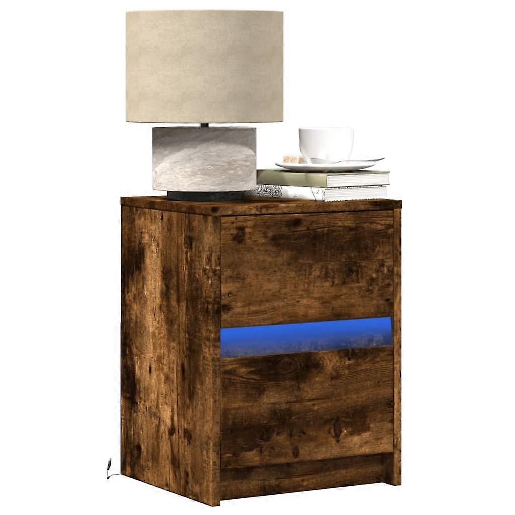 Nachttisch mit LED-Leuchten Räuchereiche Holzwerkstoff