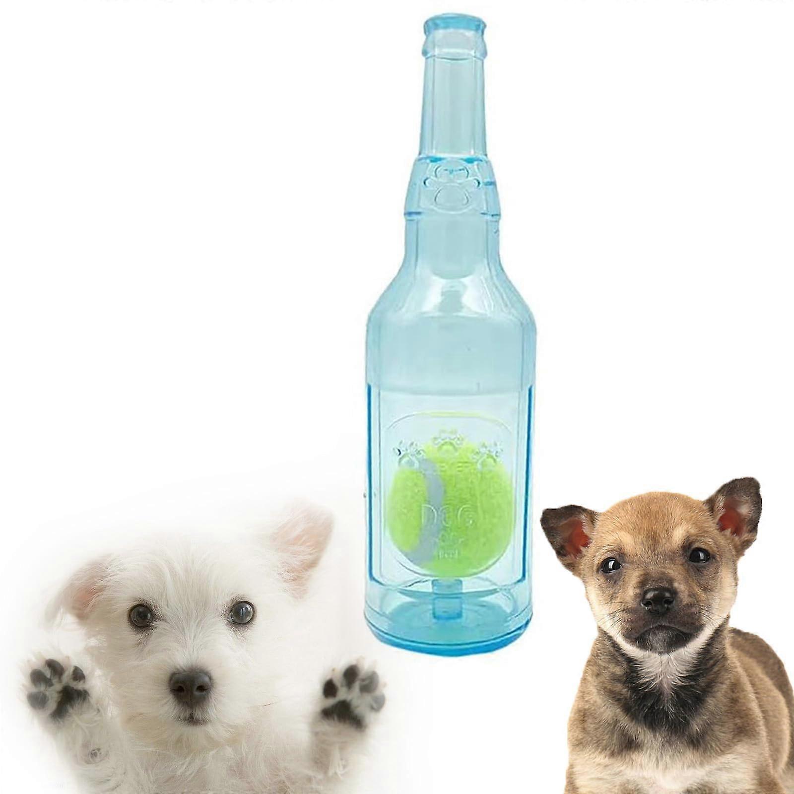 Beer Bottle with Tennis Ball Dog Chew Toy, Pet Chew Beer Bottle with Tennis Ball, Squeaky Dog Toys for Aggressive Chewers (BLUE L)