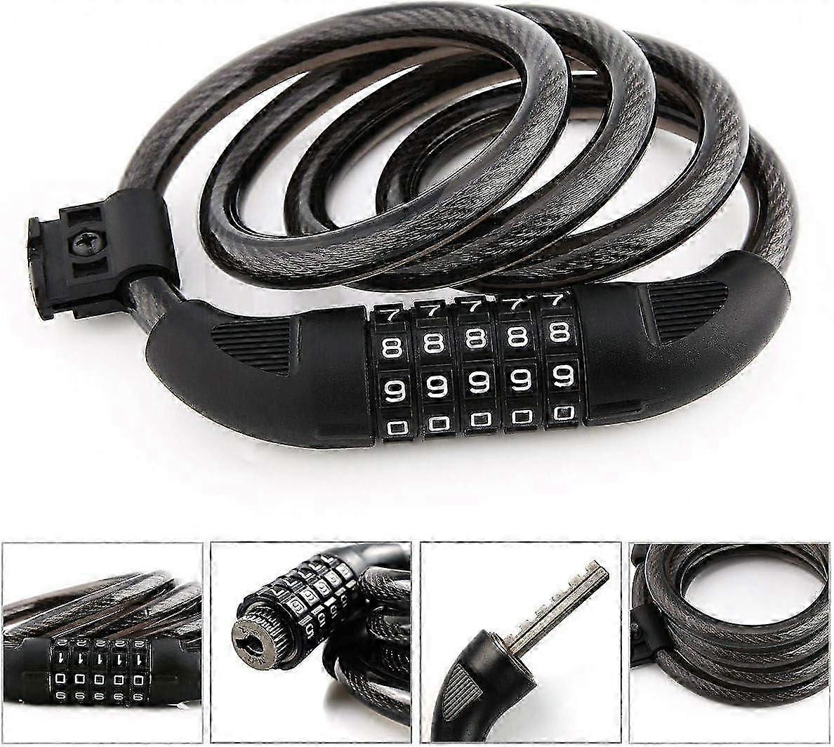 Bike lock 5 digit combination high security cable 1.2m with bracket