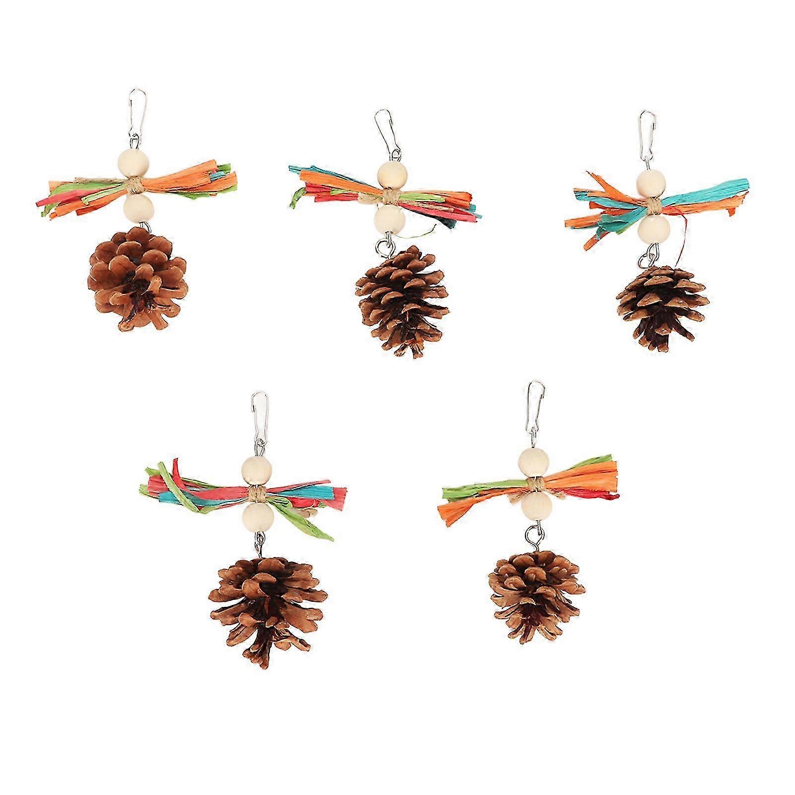 Bird Chewing Toy Set with Pine Cone Design - 5PCS Bite Resistant Hanging Toys Featuring Colorful Raffia for Boredom Relief