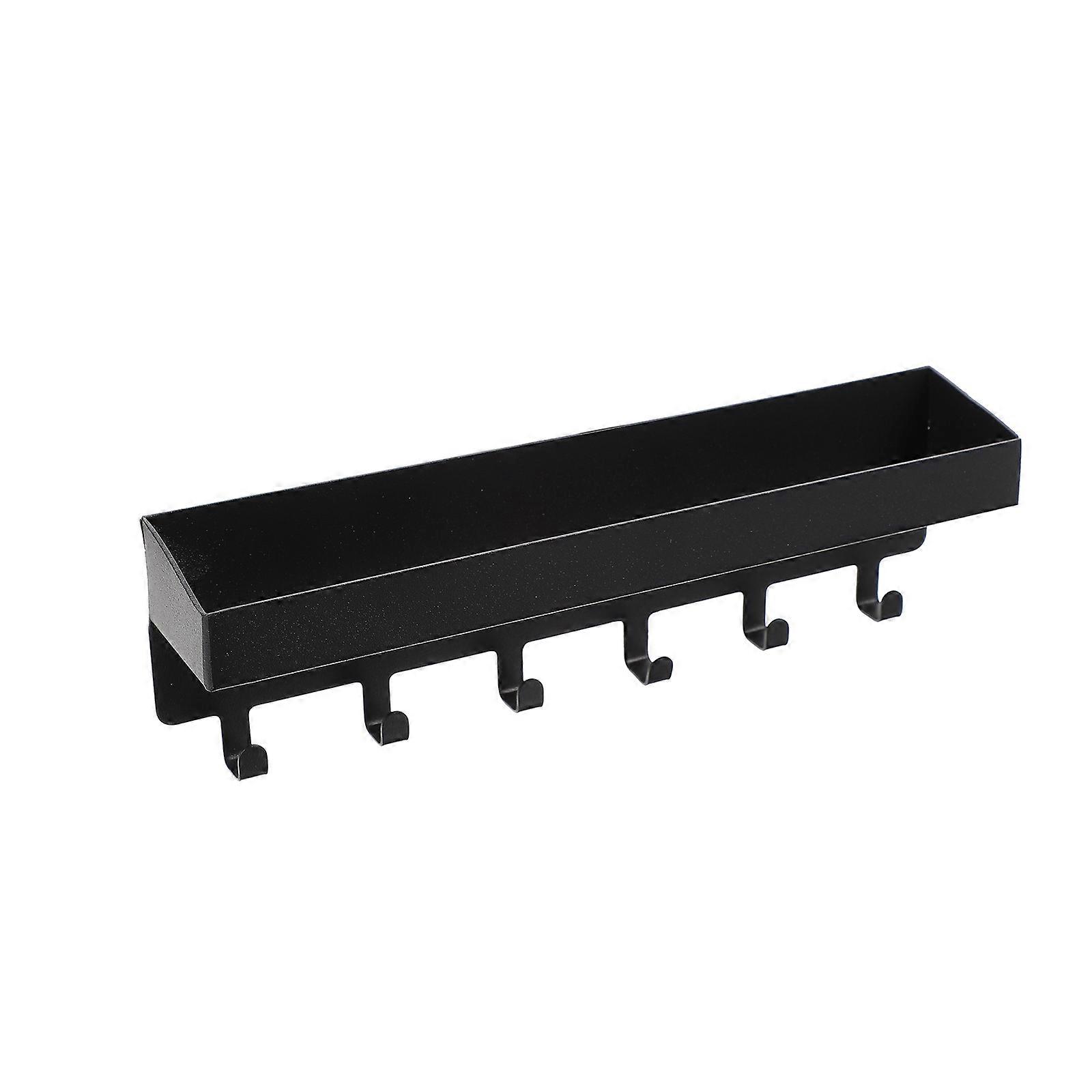 Black Iron Wall Mounted Storage Rack with Hooks – Carbon Steel Key Holder for Entryway, Living Room or Bedroom – Modern Minimalist Design, Easy