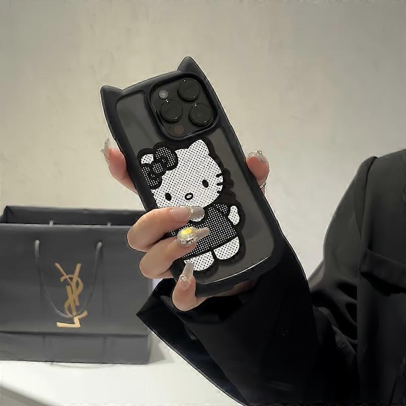 Black Transparent Hello Kitty 3D Cat Ear Phone Case for iPhone 16 Pro Max iPhone 15 Pro 14 13 12 11 Silicone Phone Cover
