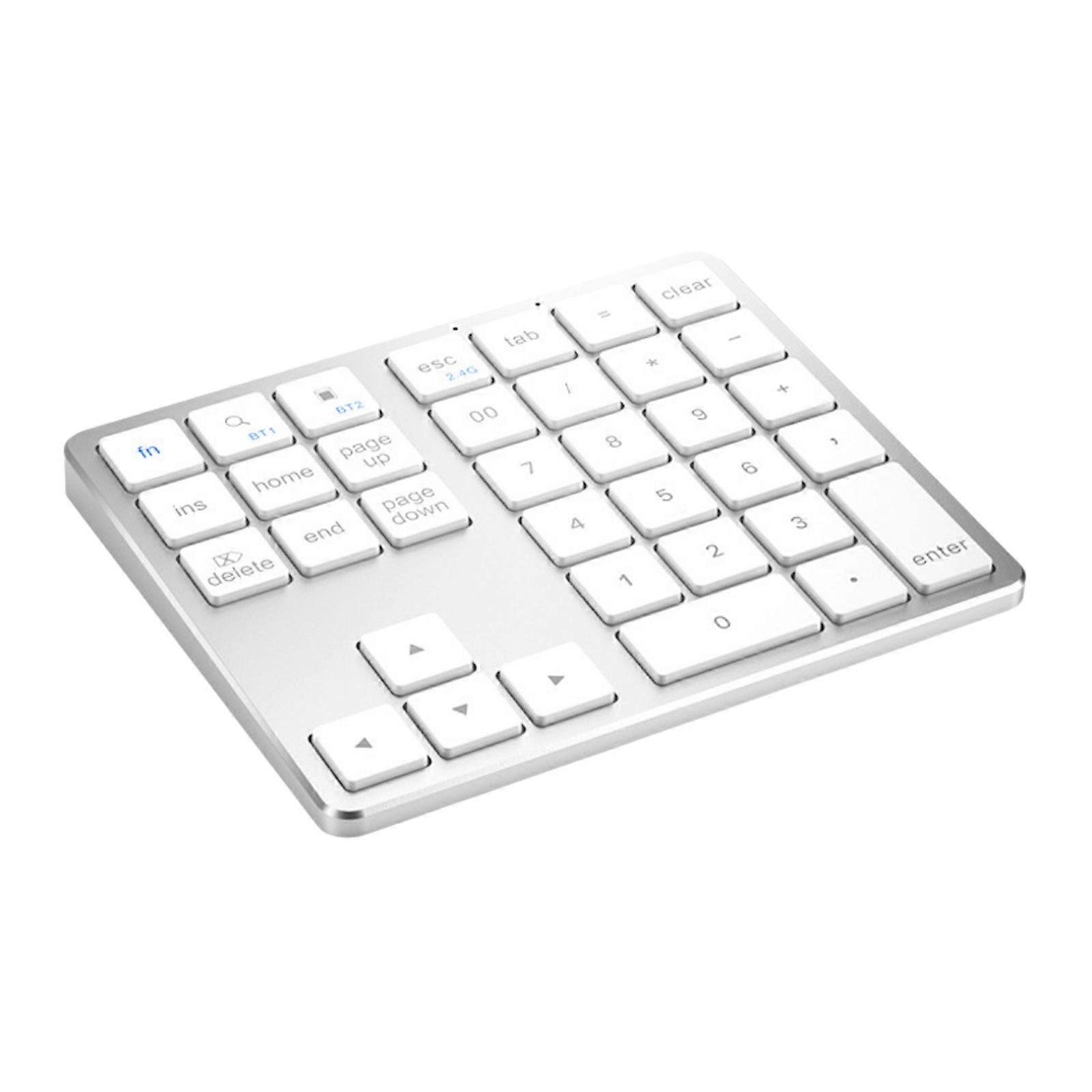 Bluetooth-compatible Numeric Keypad 35 Keys Financial Accounting Quiet Numeric Pad for Laptop Desktop PC Notebook Silver white