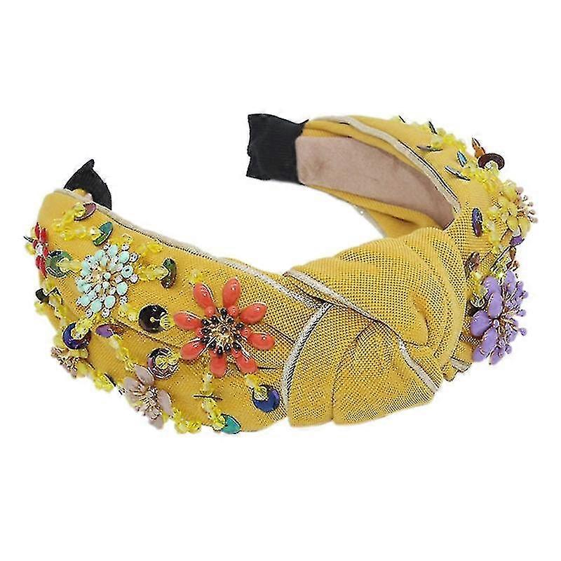 Description: Features: 100% brand new and high quality Bohemian style, wide-brimmed, colorful faux crystal metal floral decorated, shiny sequins beads embellishment, twist knot at center. Made of high quality cloth, sturdy, durable, lightweight and no hurting your ear, can stretch to accommodate most head widths. Durable and flexible material adjusts to fit multiple hair styles. Use for fixed hair, when washing face, cosmetic, face mask. The edge has a protective design that won't cut your ears. Wearing the lightweight hairband likes nothing pressure on your head. Widely used for daily wear, wedding party, date, beach, holiday, banquet, prom party, carnivals, masquerade and so on. 1 hair hoop only, other accessories demo in the picture are not included Specification: Material: Cloth Headband Width: app. 4cm(1.57in) Headband Diameter: app. 15cm(5.91in) Optional Color: A Rose Red Floral, B Black Floral, Black, Blue, Green, Rose Red, Red, White, Yellow Quantity: 1 pc Note: Transition: 1cm=10mm=0.39inch No retail package. Please allow 1-3mm error due to manual measurement. pls make sure you do not mind before you bid. Due to the difference between different monitors, the picture may not reflect the actual color of the item. Thank you Package includes: 1 x Hair Hoop(without retail package)