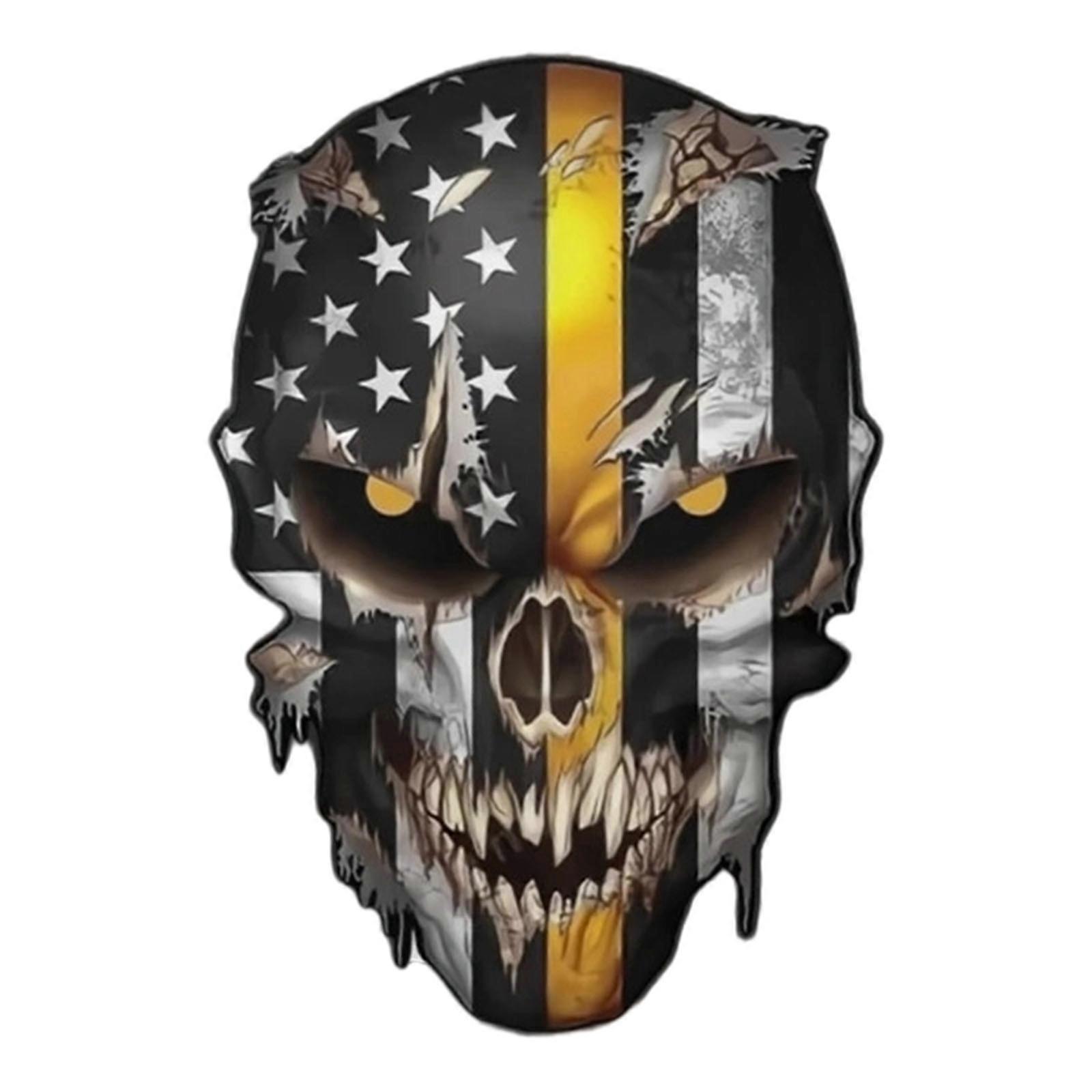 Bold Skull With Design Adhesive Vehicle Sticker Reflective Safety Feature Multicolor