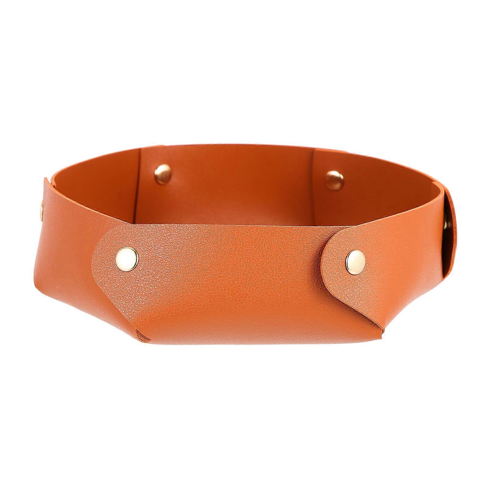 Brown Desktop Tray for Storage 2Pcs Foldable PU Holder