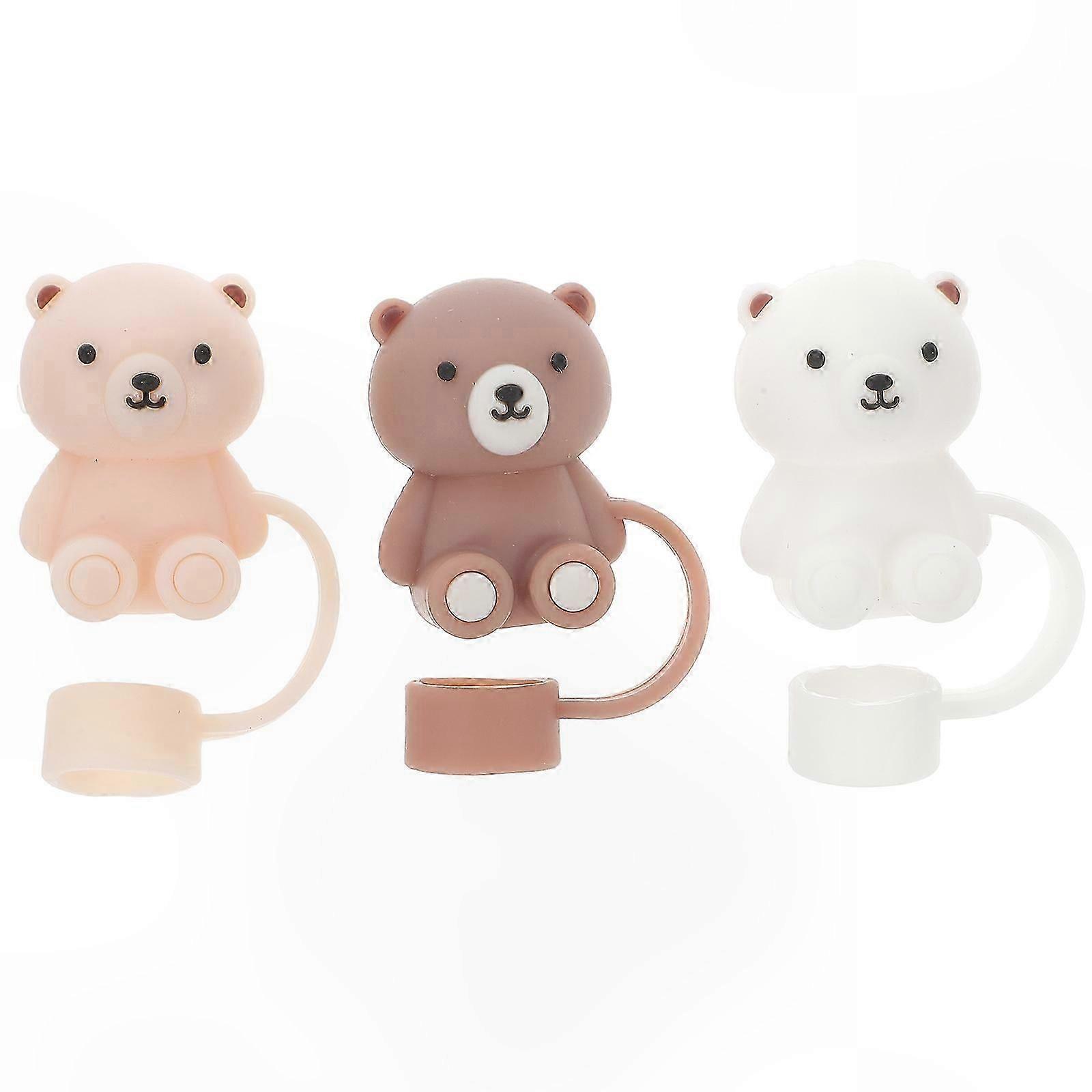 Brown Silicone Splash-Proof Straw Covers for Everyday Use, 3-Pack