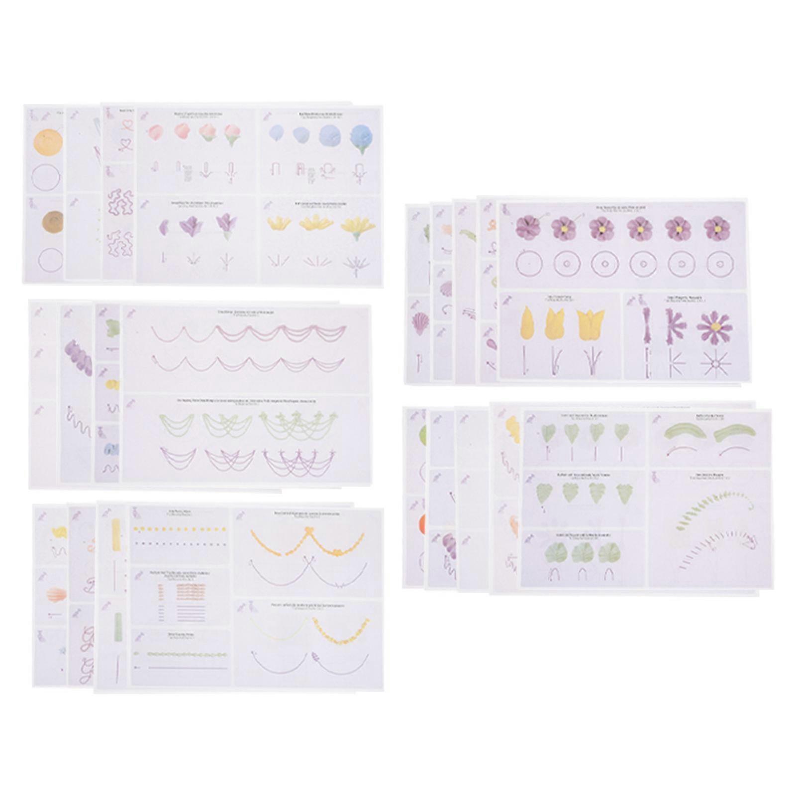 Cake Decorating Piping Practice Sheets Baking Tools Assorted Color 12 Sheets Set