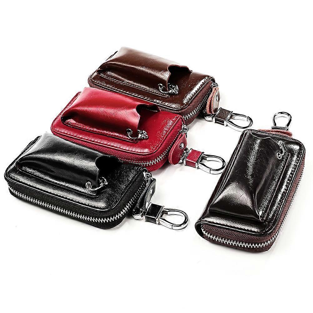 Car Key Hanging Bag for Storage Brown Zipper Pouch with Hook