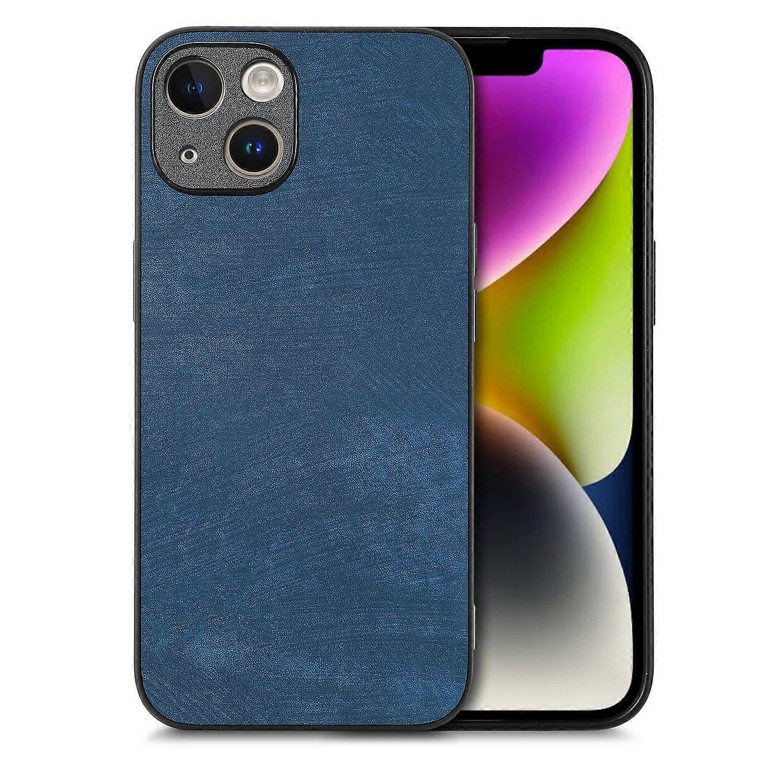 Case For Iphone 13 Mini Blue Leather Simple Solid Fine Holes Multiple Models No7022