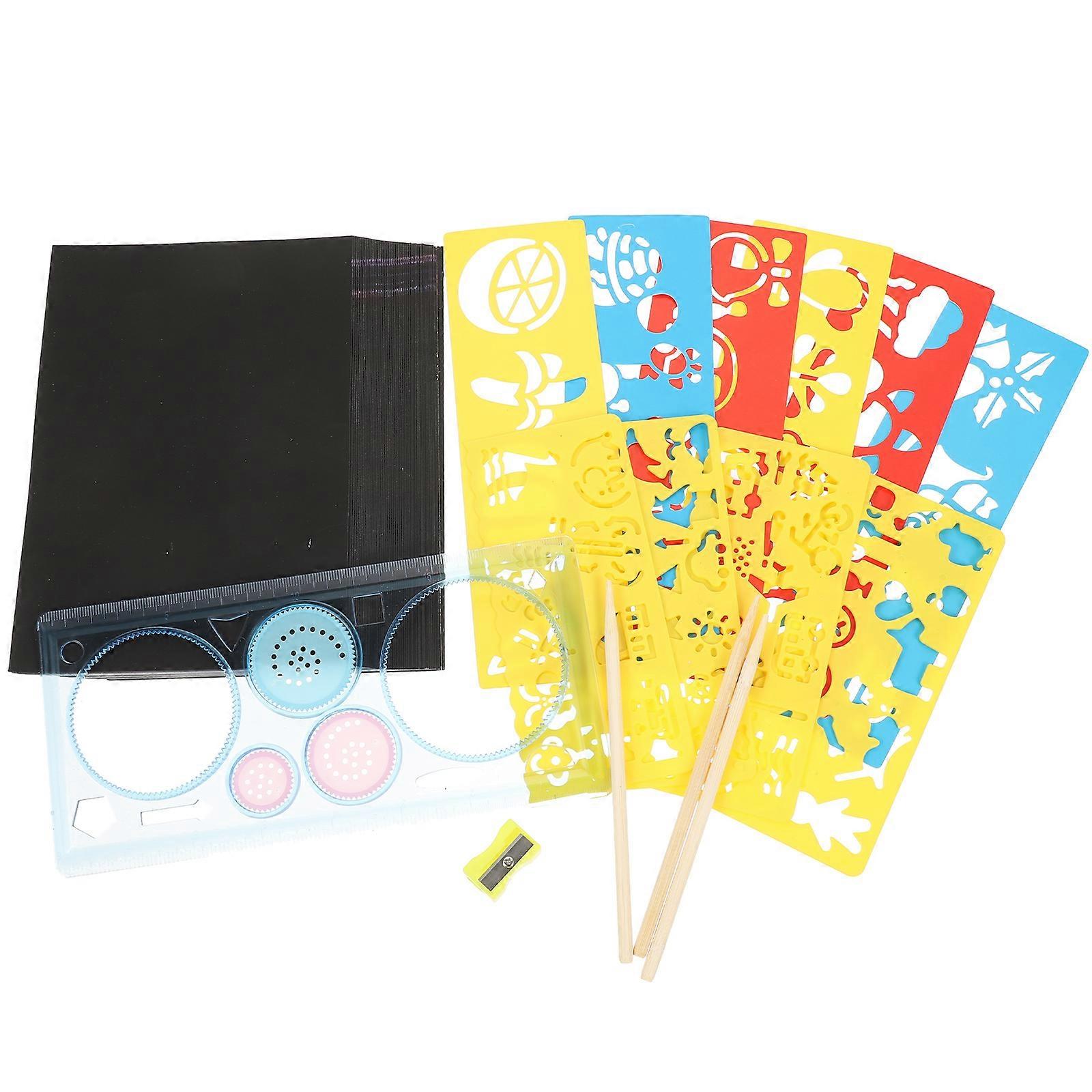 Children Scratching Painting Paper Craft Supplies Parent-Child Activities Wooden Material DIY Scratching Paper Imagination Development 1Set