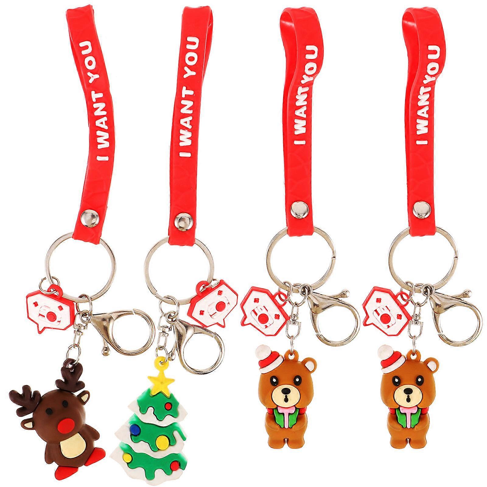 Christmas Key Pendants Lovely Keychains for Decoration in Assorted Color and Durable Material 4Pcs