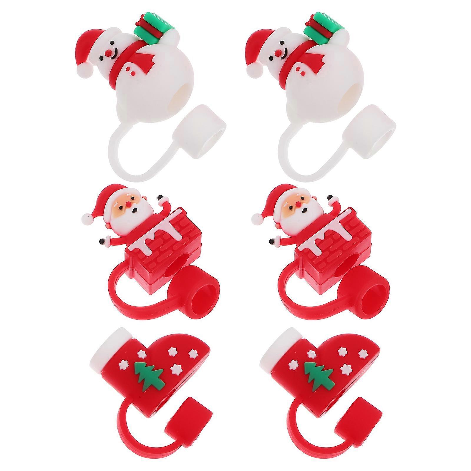 Christmas Silicone Straw Caps Reusable Decorative Drinking Accessory With Cute Snowman Santa And Boot Pattern For Xmas Party Favors 6Pcs