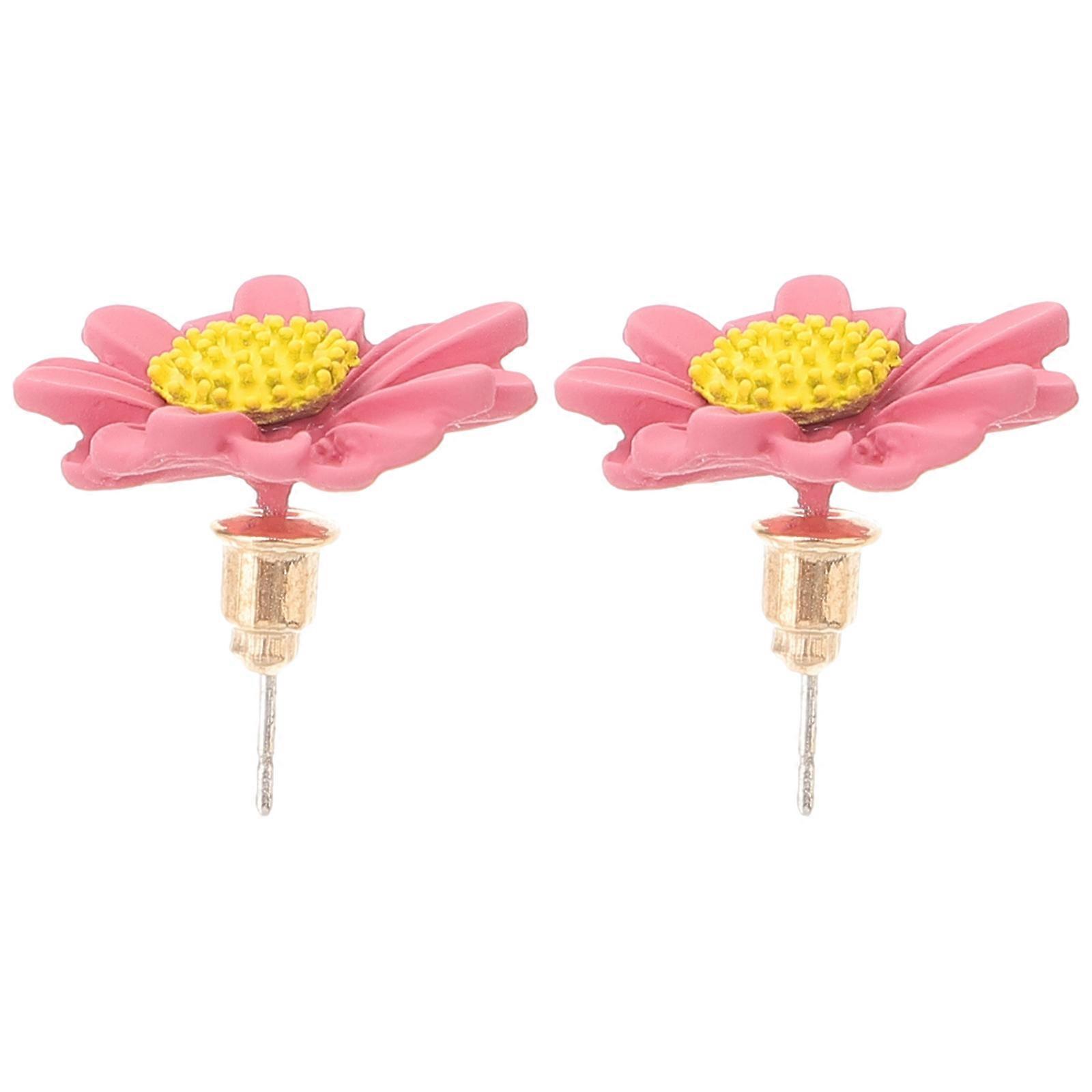 Flower Ear Ring Contemporary Fashion Accessory For Ladies Party Holiday Wear 2.4X2.4Cm Pink 1Pair