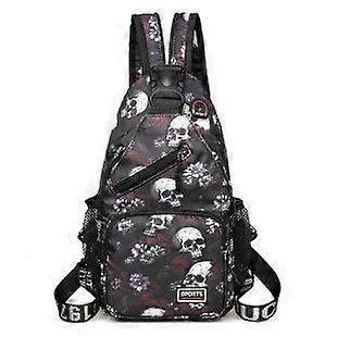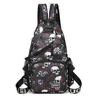 Skeleton print casual chest bag with double straps and headphone jack, adjustable shoulder straps for daily commuting and work travel bags