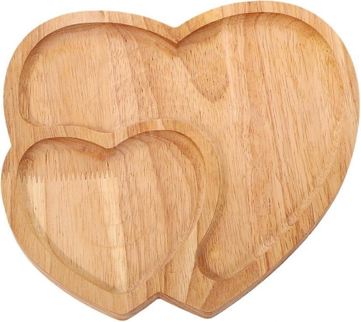 Double Heart Shaped Wooden Serving Tray, Cheese Board Salad Plate Dinner Plate Cake Plate Decorative Serving Platter Plate for Valentines Day Dcor