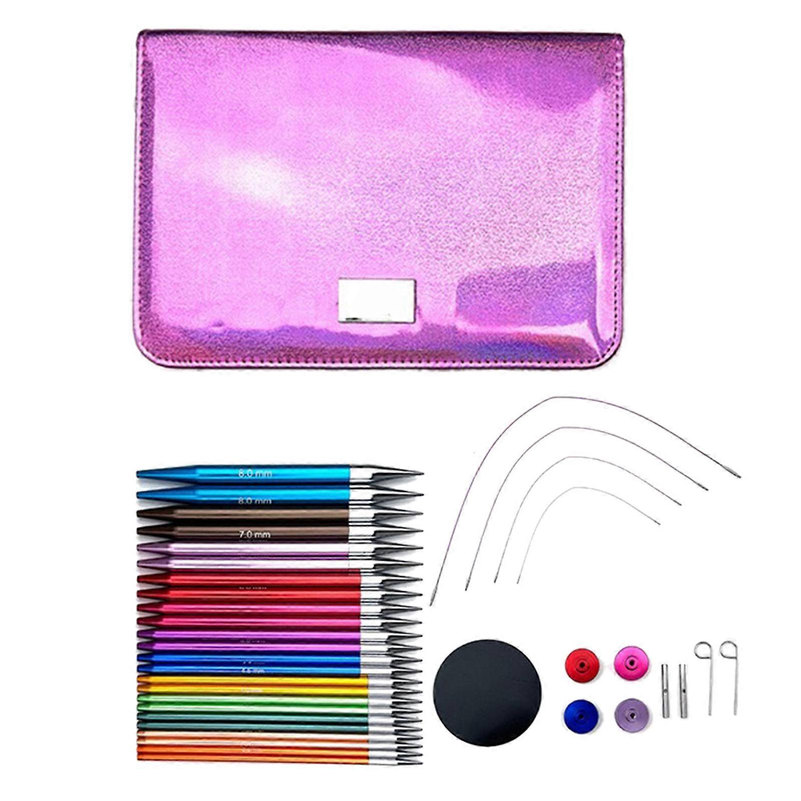Circular Knitting Needle Set Size 3.0-8.0mm Circular Needle with Case & Accessories Interchangeable Needle for Knitting Multicolor