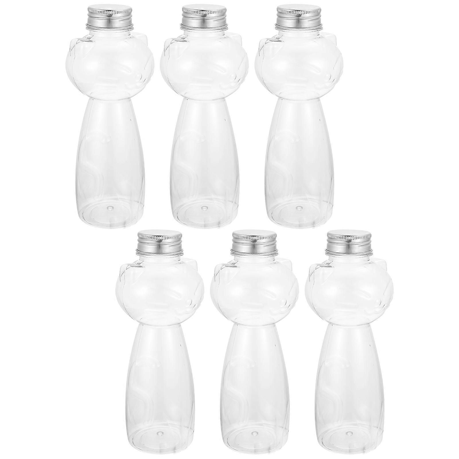 Clear Bottles With Caps Creative Cat Shaped Milk Tea Containers Liquid Storage For School Workplace 6Pcs