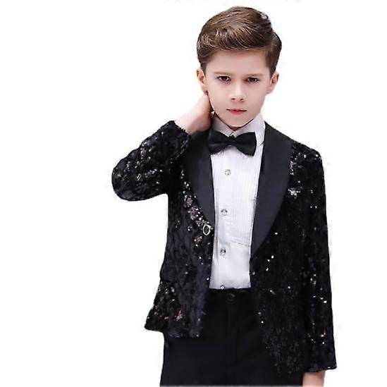 Kids Boys Shiny Sequins Suit Jacket Coat Blazer Formal Tuxedo