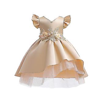 Kids Girls V-neck Floral Ruffle A-line Dress Sleeve Flutter Sleeve Formal Party Dresses