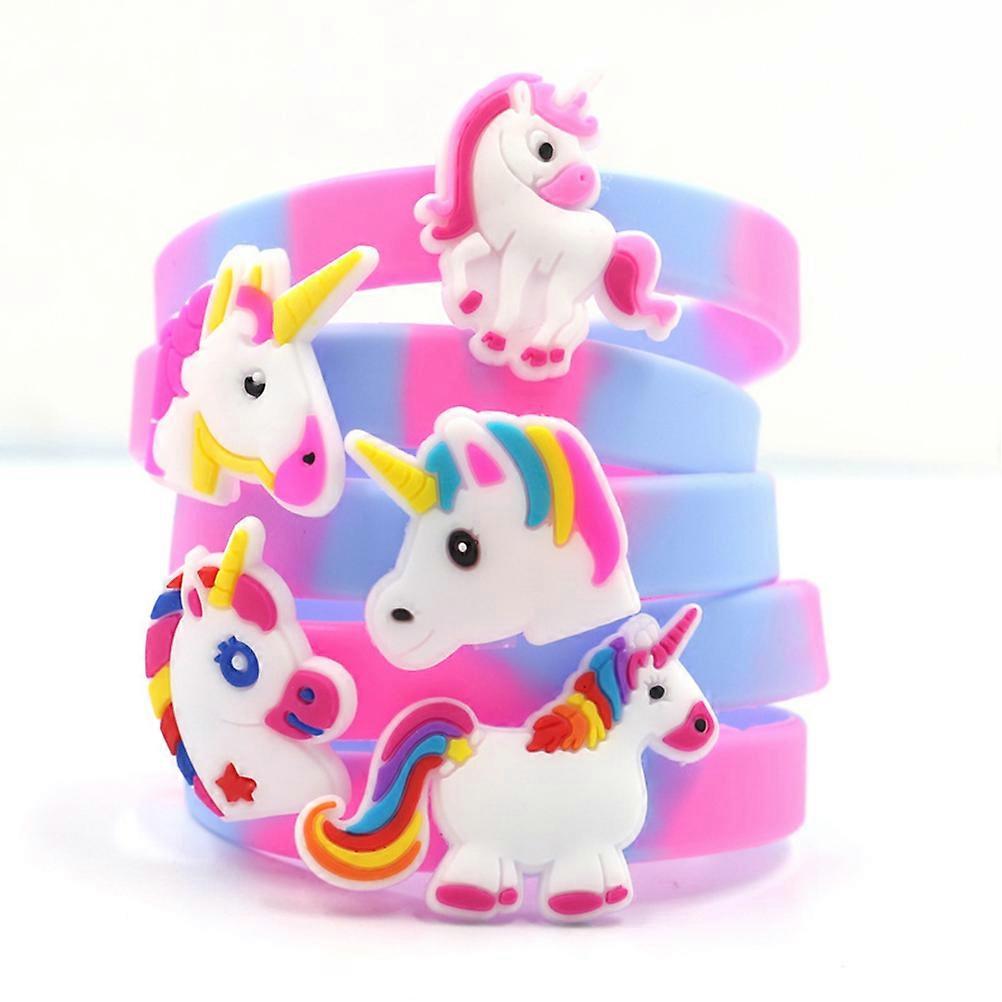 Children Unicorn Style Bracelets Round Colorful Wristbands for Girls Halloween Party Favors 6Pcs