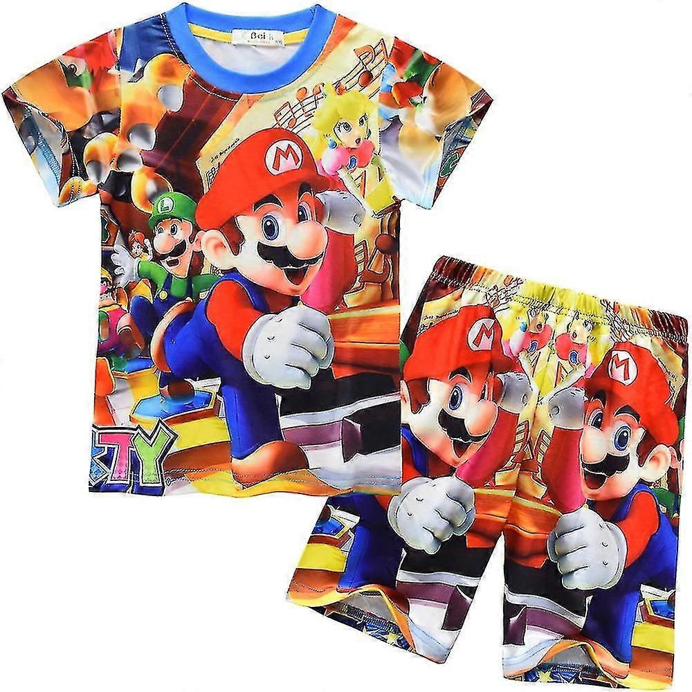 Kids Boys Super Mario Print Short Sleeve T-shirt Shorts Casual Outfit Set Pajamas Summer