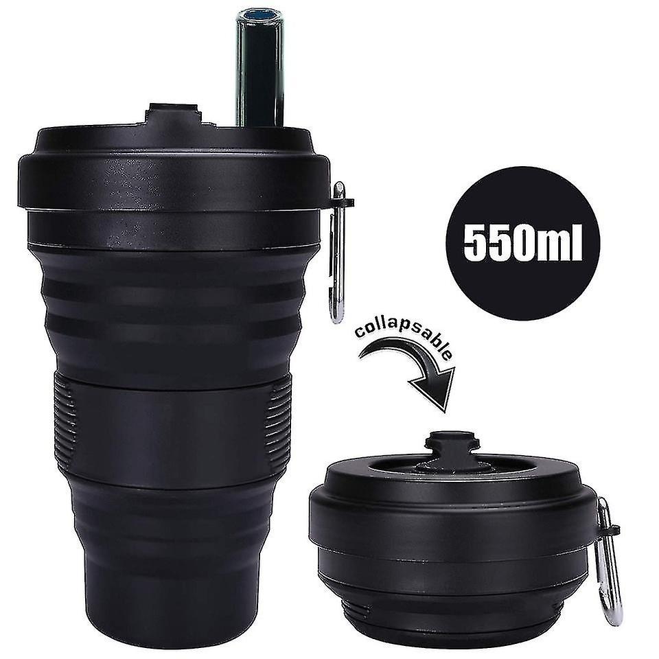 Collapsibl Silicone Coffee Cup With Straw Lid 550ml Folding Mug Leak Proof Bpa Free Reusable Portable Water Bottle Travel Black