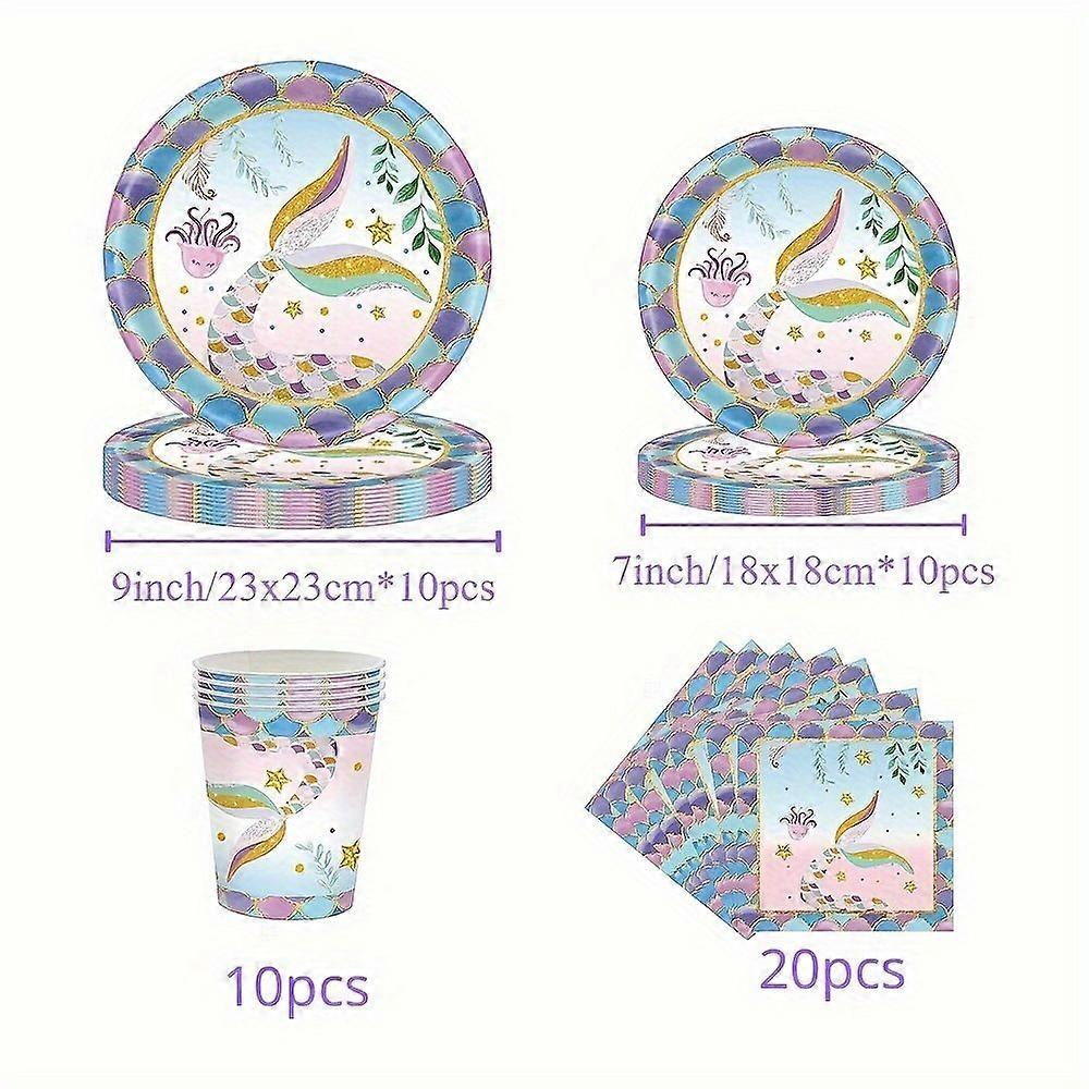 Colorful fishtail mermaid pattern party disposable tableware set paper plate paper cup paper towel