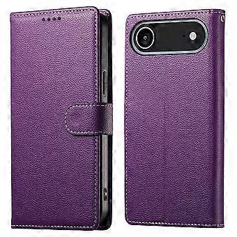 iPhone 17 Hava Kılıfı İçin Uyumlu Manyetik Snap Litchi Doku Deri Cüzdan Bilek Kayışlı Telefon Kapağı