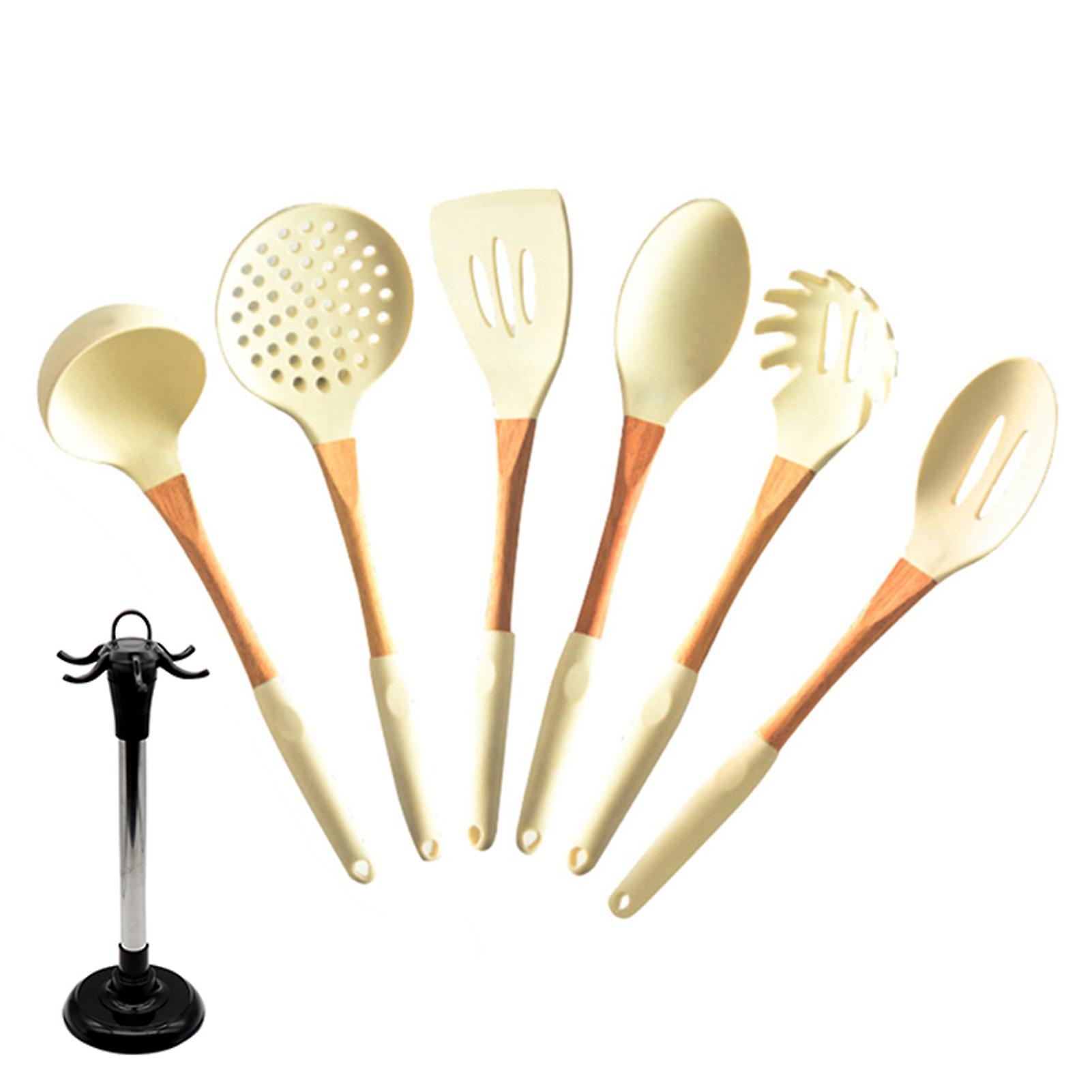 Cooking Utensils Set for Kitchen Non Stick 6 Pcs Silicone Cookware with Wooden Handle and Stand