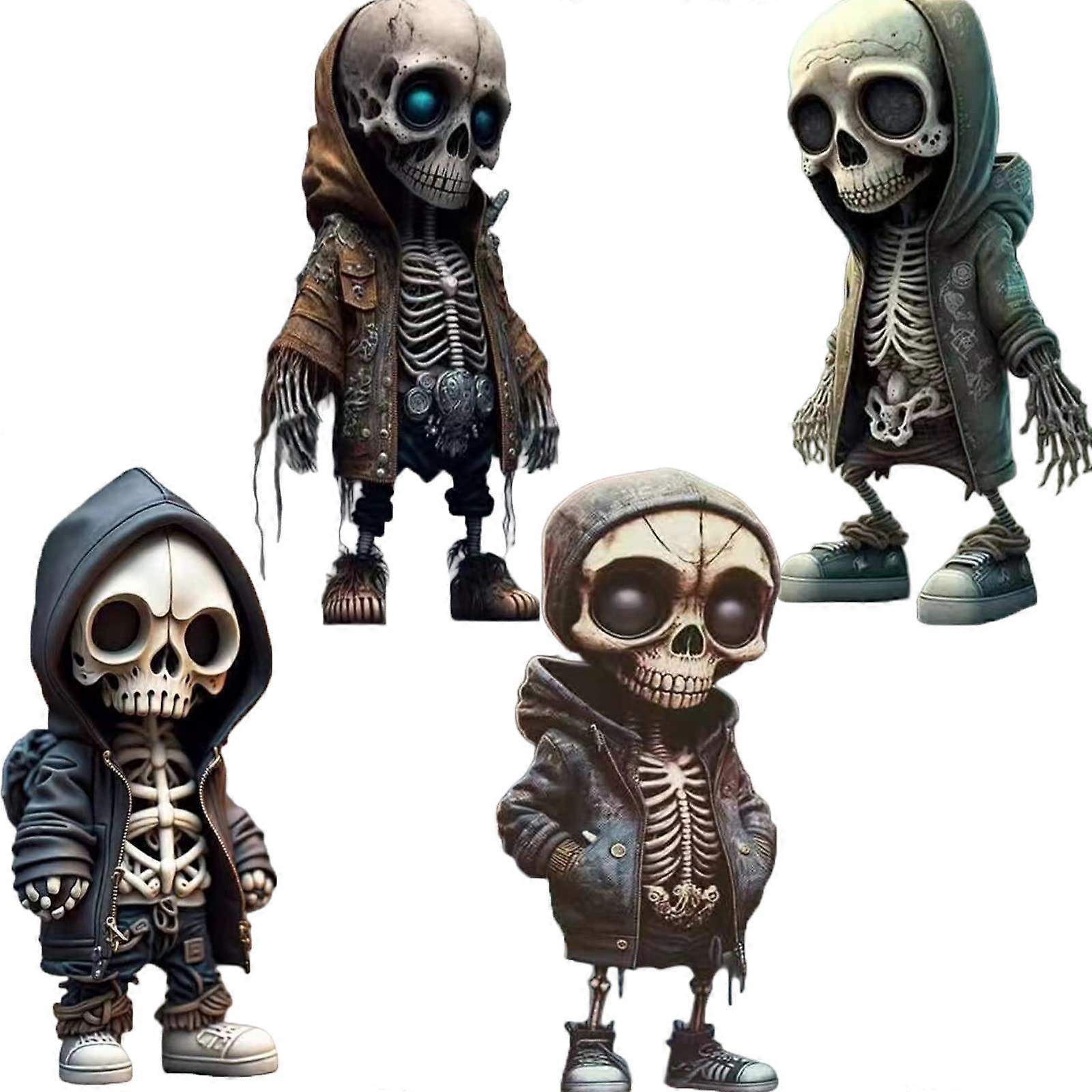 Cool Skeleton Figures - 4 Piece Decorative Gothic Skull Home Decor for Halloween, Unique Resin Sculptures in Black and White