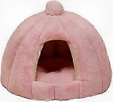 Cozy Pet Enclosure Dog and Cat Bed with Plush Rabbit Fur for Large Pets in Pink Color