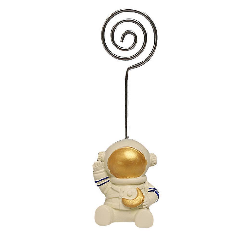 Cute Astronaut Paper Clip Holder, Creative Note Clip for Home Office School, Golden Multi Functional Memo Card Stand
