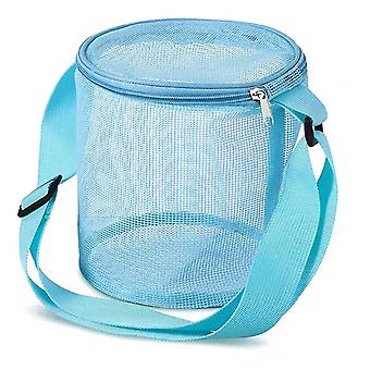 Cylindrical Mesh Tote Shell Bags,Sand Beach Toys Storage Bag Adjustable Carrying Straps And Zippered