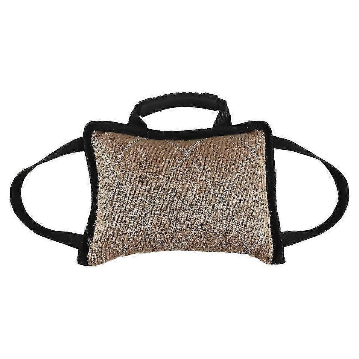 Durable Dog Training Bite Tug Toy with 3 Handles Jute Linen Bite Pillow