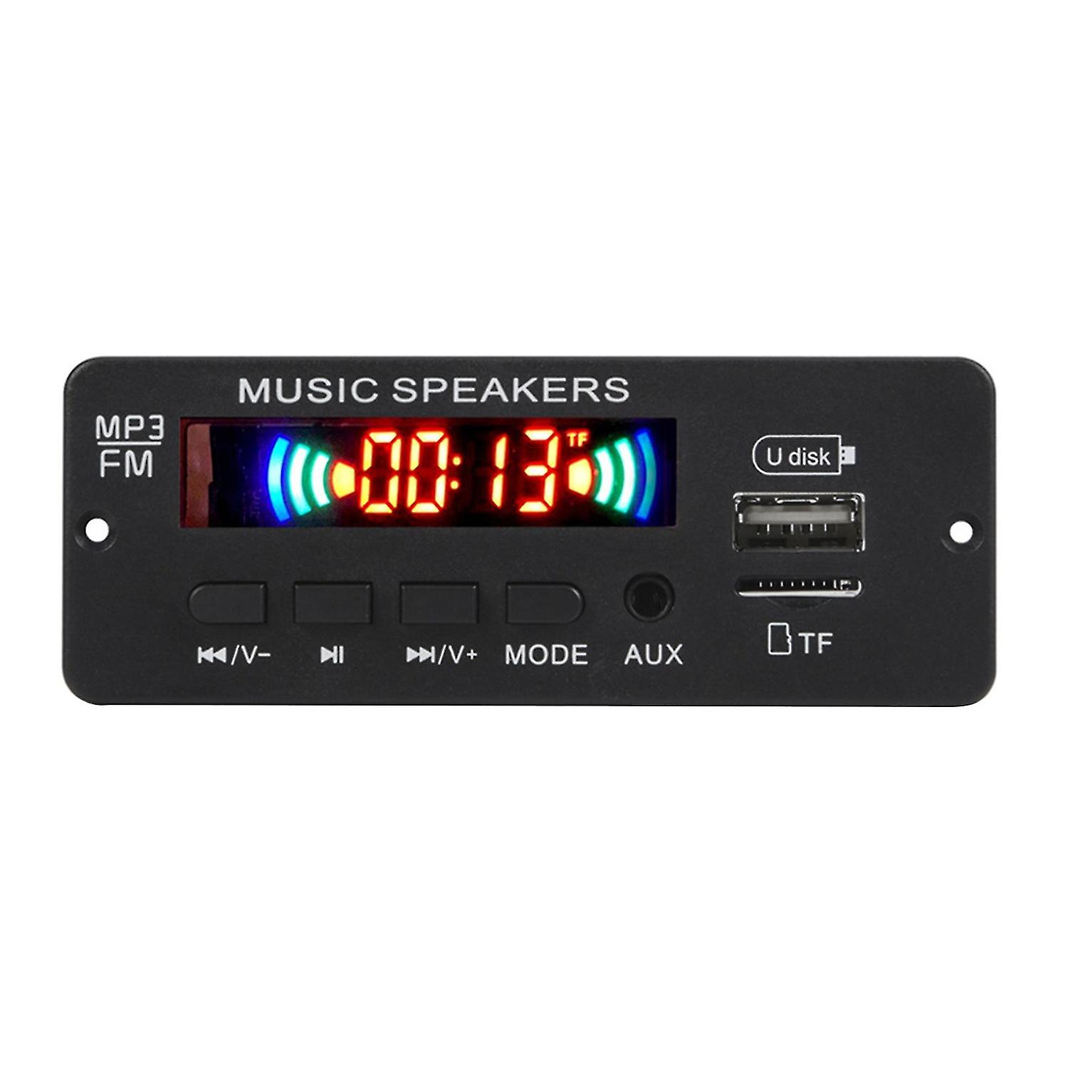 The bluetooth-compatible 5.0 technology allows for stable and non-delayed transmission of the decoder board.The bluetooth-compatible decoder supports calling, recording, music playing and so on, which is multifunctional and practical.Made of ABS material and PCB material, the bluetooth-compatible decoder is eco-friendly and reliable to use. It can be linked to the microphone directly and it will have amplifier and decoder function.The length of the bluetooth-compatible decoder is 95mm and width is 35mm.The bluetooth-compatible decoder supports the function of MP3, USB, TF, LINE IN, FM, bluetooth-compatible and remote controller. It supports many music formats such as MP3, WAV, APE and FLAC. It also supports non-voltage memory.Item Name: bluetooth-compatible DecoderMaterial: ABS,PCBColor: BlackBluetooth Version: 5.0Power: 6WTrue Stereo: 2W x 3WWorking Current: 1-2APower Supply Voltage: DC 6V-12VSupport Music Format: MP3, WAV, APE, FLACFeatures: Multifunctional, Lightweight, PortableSize Details: 9.5cm x 3.5cm/3.74" x 1.38" (Approx.)Notes:Due to the light and the screen setting difference, the item's color may slightly differs from the pictures.Please allow slight dimension difference due to the manual measurement.The recording function can work only with TF mode or USB mode.Press the MODE button for a long time to start recording, and press it again for a long time to cancel the recording and play the recording file. It you want to exit the recording mode, press the pause button for a long time. When recording, you need to connect a storage device, such as U disk or TF card.Package Includes:1 x bluetooth-compatible Decoder1 x Remote Controller(Button Battery Not Included)1 Set of Connecting Cable