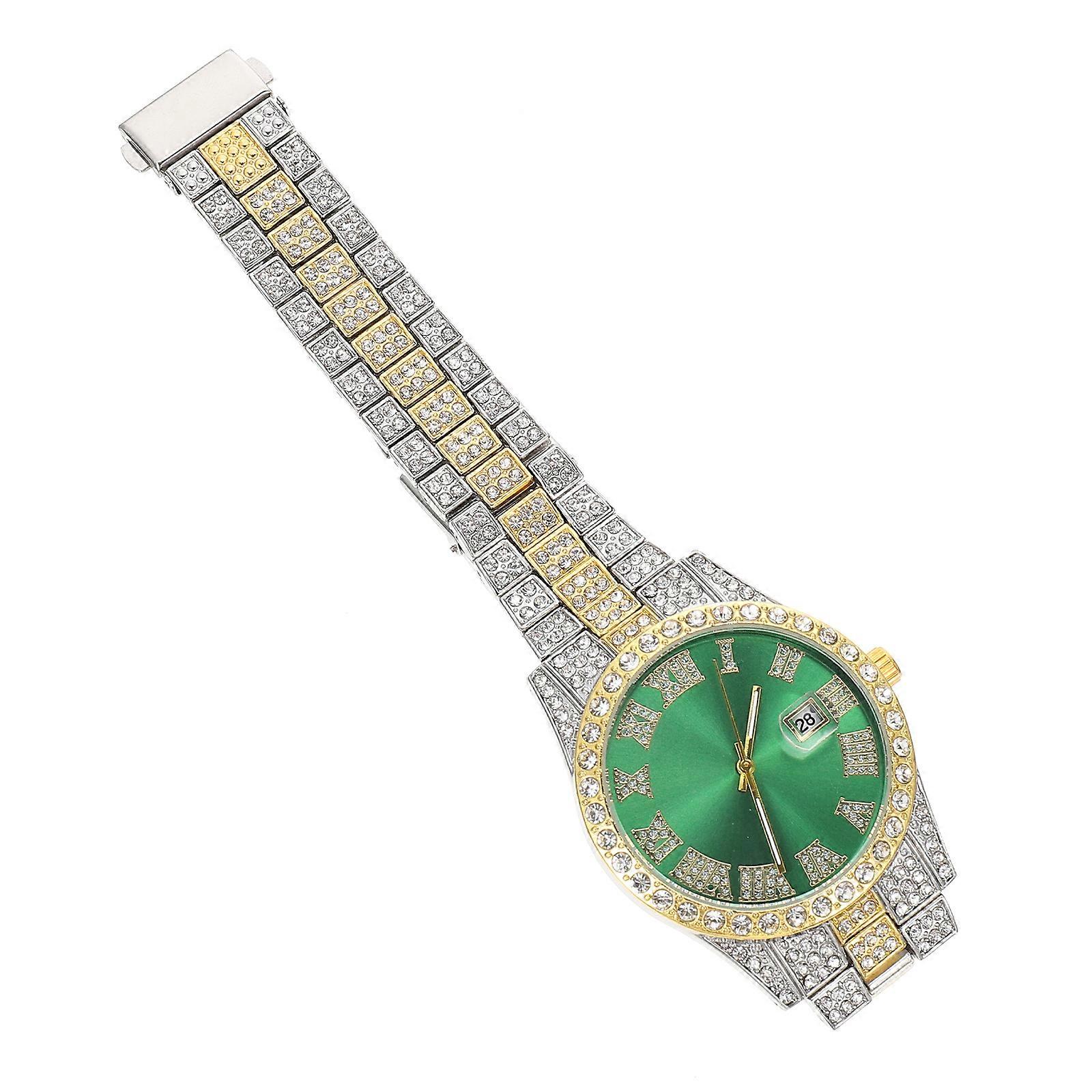 Decorative Wrist Watch for Men with Diamond-Encrusted Design 2Pcs Set