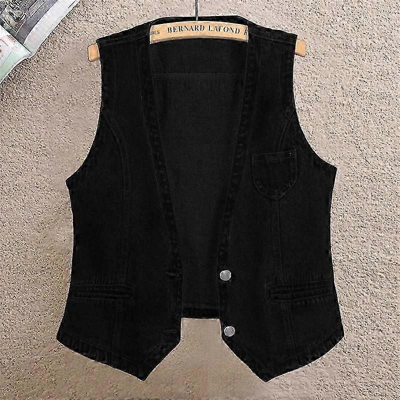 Denim Vest Women's Short Spring and Autumn All-match Slim Sleeveless Jacket Vest Single-breasted Solid Color Top