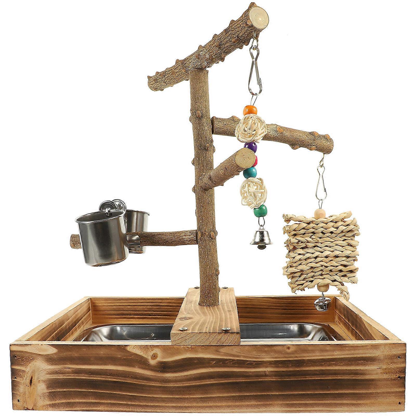 Desktop Bird Stand Parrot Stands For Indoor Wooden Parrot Perch Birds Crowd 34.5x24.5cm 1 Set