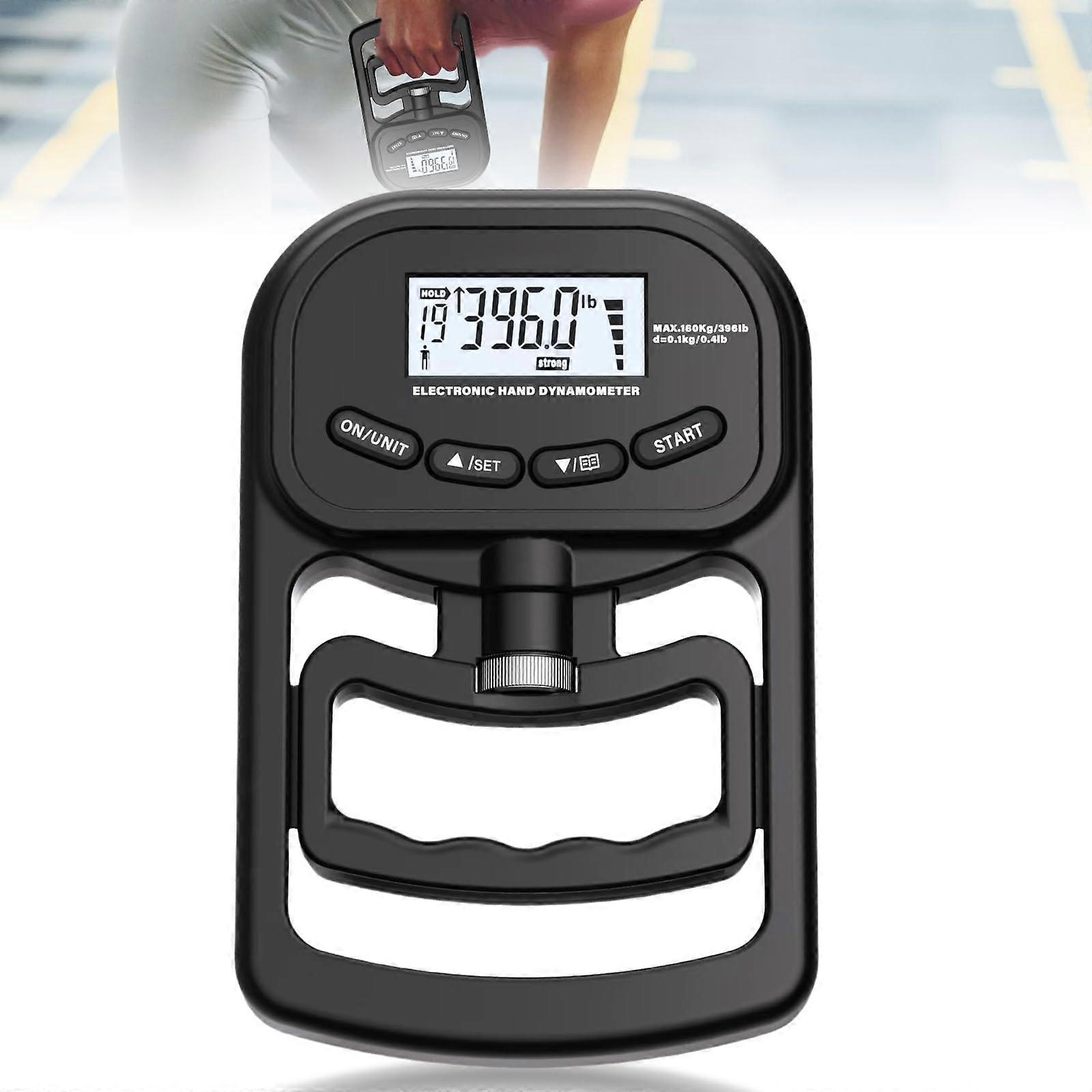 - Digital Hand Grip Strength Tester: Equipped with a high-precision strain gauge sensor, this device provides accurate, instant digital readings of grip strength. Maximum measurement capacity is 396 lbs (180 kg) with a resolution of 0.2 lbs (0.1 kg). - Easy Readability and USB Rechargeable: The improved bright display allows for clear visibility of measurements, even in low-light conditions. Displayed information includes user code, gender, grip strength value (in lbs or kg), and grip status. The device can be conveniently charged via USB, promoting eco-friendliness, and can also use standard AAA batteries (not included). - User-Friendly Operation: Simply turn on the Digital Hand Grip Strength Tester and press start to measure. Apply maximum isometric force for at least 5 seconds. The LCD will automatically show the peak grip strength, with a status bar indicating "weak," "normal," or "strong" based on user data such as age and gender. - Versatile Applications: Ideal for sports training, home use, and clinical settings. Grip strength assessments are essential for activities like rock climbing. This hand dynamometer is perfect for physiotherapists, occupational therapists, sports trainers, chiropractors, and general practitioners. - Durable and Compact Design: The device's robust construction ensures long-lasting performance, while its compact size makes it easy to store and transport, fitting seamlessly into any training or clinical environment. This Digital Hand Grip Strength Tester is essential for anyone looking to monitor and improve their grip strength effectively.